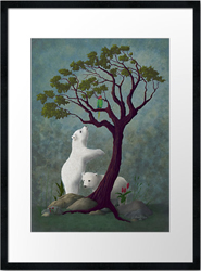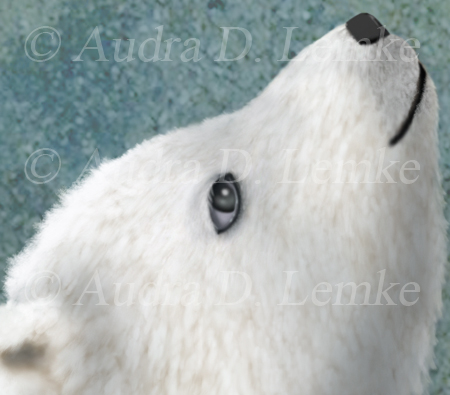 "Not Like Home" DETAIL IMAGES: "Bear 1", "Bear 2", "Parrot" Two polar bear cubs look out of place in this warm, tropical habitat. Inspired by the scientific evidence of melting Arctic sea ice, the home environment of the polar bear. Protect and respect our oceans, our animals, and our planet earth! Digital painting with my own added textures. (Copyright © 2016 Audra D Lemke). |