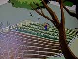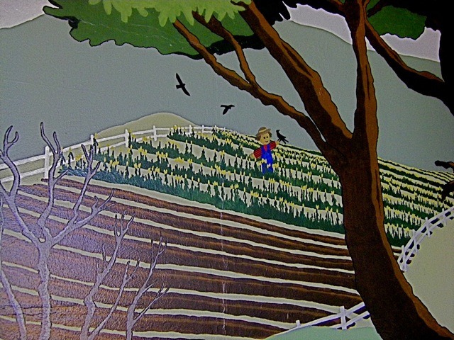 Detail from the cow spot mural. I cleaned up the digital version of this image and made an image that you can buy! See my cow and calf cartoon artwork that I derived from this mural image. |
