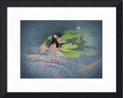"Dreams of Golden Scales" Young girl with koi and lily pads. Digital photo-manipulation using only my own photos, Copyright © 2013 Audra D. Lemke. |