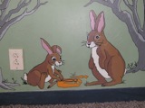 Bunny cutting carrot shapes out of play dough. See my Easter Bunny artwork that I derived from this mural image. |