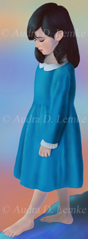 "Alice's Ambivalence" DETAIL IMAGES: "Alice1","Alice1 Face", "Alice2","Alice2 Face", "White Rabbit", "Hot Air Balloon" Alice enjoys her world of childhood, yet wants to understand the rule-ridden and confusing world of adults. She sometimes feels confident about growing up, the path ahead of her, but then also feels hesitant and uncertain at times. Here, the White Rabbit starts the journey for the two sides of Alice, and the Queen of Hearts looms through the clouds like an ominous dream. (Copyright © 2011 Audra D. Lemke). |